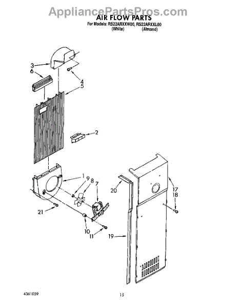 Parts for Whirlpool RS22ARXXL00: 10 - Air Flow Parts