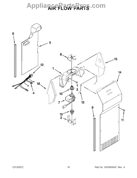 This air duct channels airflow inside the appliance to help maintain proper venting and efficient operation. Replacing a damaged duct restores correct air pathing and helps prevent airflow restrictions. What it does: