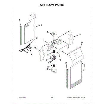 This fan scroll is the plastic housing that surrounds the evaporator fan in the freezer section. It directs air across the evaporator coils and into the ducts, helping your refrigerator move cold air evenly and maintain stable temperatures.