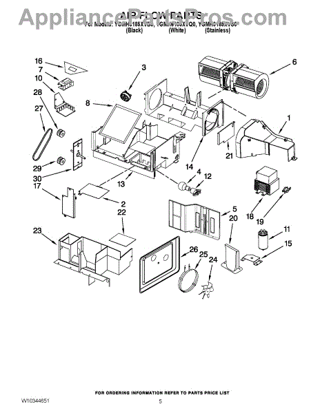 Parts for Whirlpool YGMH6185XVB0: 04 - Air Flow Parts
