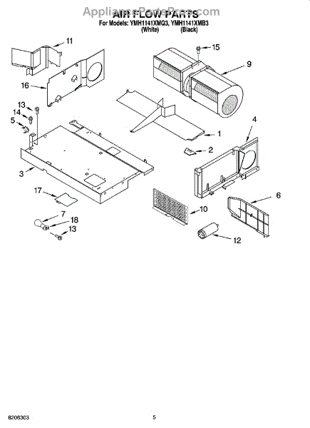Parts for Whirlpool YMH1141XMB3: 04 - Air Flow Parts