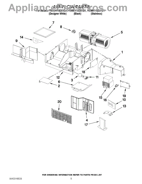 Parts for Whirlpool YWMH1162XVB1: 04 - Air Flow Parts