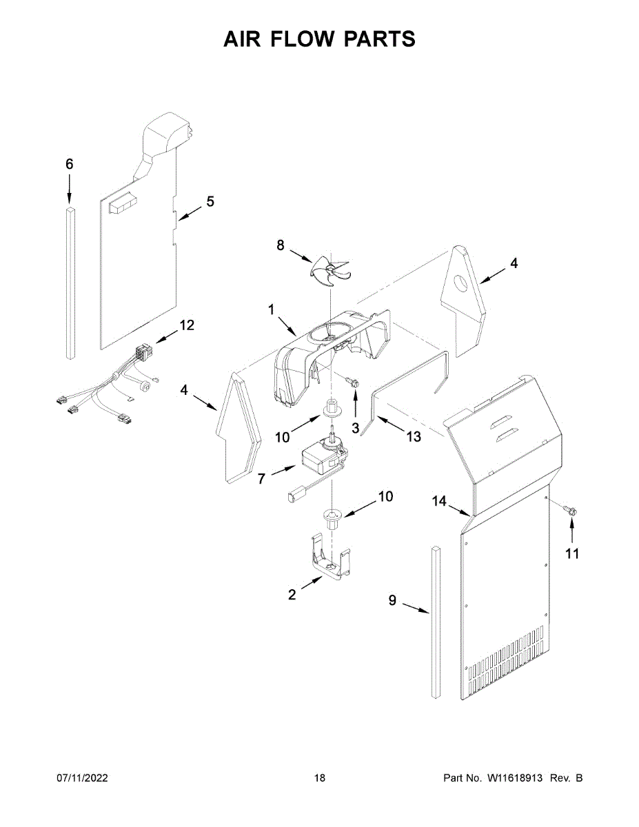 This fan scroll is the molded blower housing that directs airflow from the appliance fan for efficient cooling and ventilation. Replacing a damaged scroll restores proper air path and reduces airflow noise or performance issues. What it does