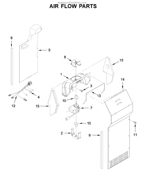 This fan scroll is the plastic housing that surrounds the evaporator fan in the freezer section. It directs air across the evaporator coils and into the ducts, helping your refrigerator move cold air evenly and maintain stable temperatures.