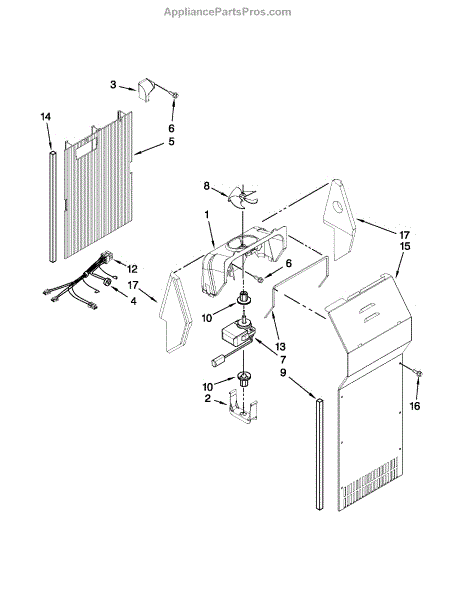 This fan scroll is the plastic housing that surrounds the evaporator fan in the freezer section. It directs air across the evaporator coils and into the ducts, helping your refrigerator move cold air evenly and maintain stable temperatures.