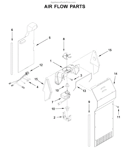 This fan scroll is the plastic housing that surrounds the evaporator fan in the freezer section. It directs air across the evaporator coils and into the ducts, helping your refrigerator move cold air evenly and maintain stable temperatures.