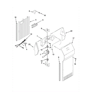 This fan scroll is the plastic housing that surrounds the evaporator fan in the freezer section. It directs air across the evaporator coils and into the ducts, helping your refrigerator move cold air evenly and maintain stable temperatures.
