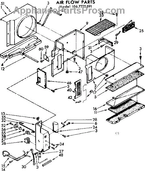 Parts for Kenmore 106.7771591 (1067771591, 106 7771591): Air Flow Parts