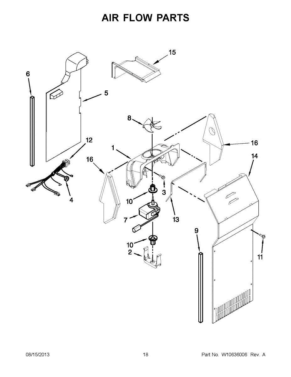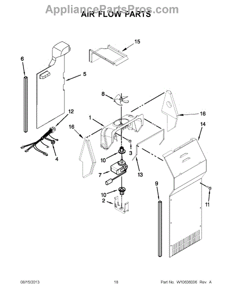 This fan scroll is the molded blower housing that directs airflow from the appliance fan for efficient cooling and ventilation. Replacing a damaged scroll restores proper air path and reduces airflow noise or performance issues. What it does