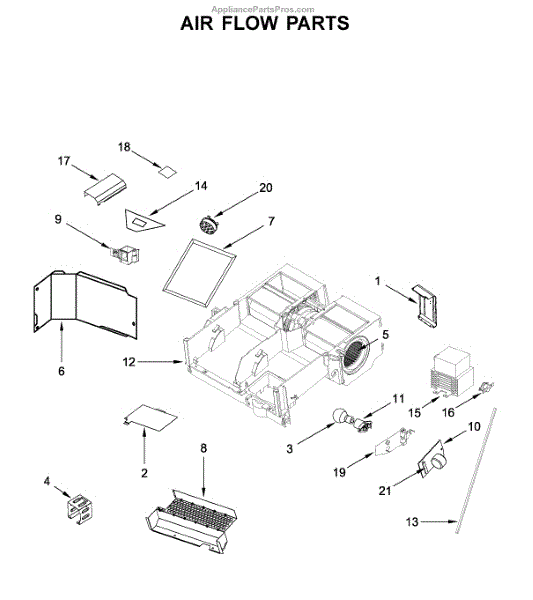 This air deflector redirects airflow inside the appliance to help maintain proper circulation and protect components from direct airflow. Replacing a damaged deflector restores intended air paths and can reduce uneven temperature or noise. What it does