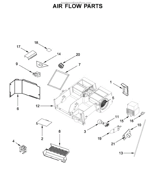This air deflector redirects airflow inside the appliance to help maintain proper circulation and protect components from direct airflow. Replacing a damaged deflector restores intended air paths and can reduce uneven temperature or noise. What it does