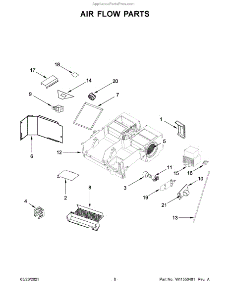 This air deflector redirects airflow inside the appliance to help maintain proper circulation and protect components from direct airflow. Replacing a damaged deflector restores intended air paths and can reduce uneven temperature or noise. What it does