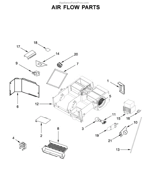 This air deflector redirects airflow inside the appliance to help maintain proper circulation and protect components from direct airflow. Replacing a damaged deflector restores intended air paths and can reduce uneven temperature or noise. What it does