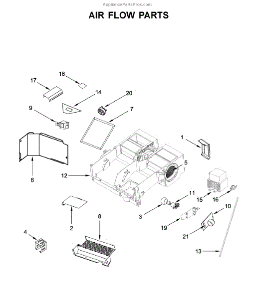 This air deflector redirects airflow inside the appliance to help maintain proper circulation and protect components from direct airflow. Replacing a damaged deflector restores intended air paths and can reduce uneven temperature or noise. What it does