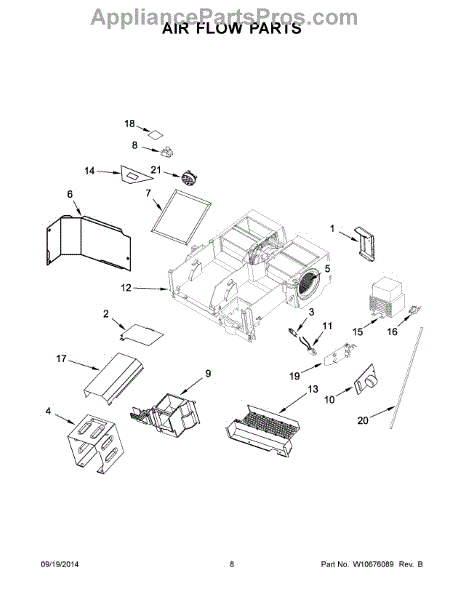 This air deflector redirects airflow inside the appliance to help maintain proper circulation and protect components from direct airflow. Replacing a damaged deflector restores intended air paths and can reduce uneven temperature or noise. What it does
