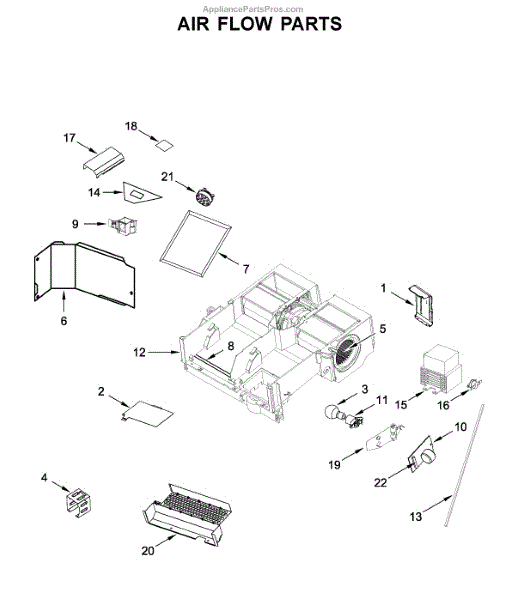 This air deflector redirects airflow inside the appliance to help maintain proper circulation and protect components from direct airflow. Replacing a damaged deflector restores intended air paths and can reduce uneven temperature or noise. What it does