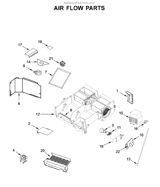 This air deflector redirects airflow inside the appliance to help maintain proper circulation and protect components from direct airflow. Replacing a damaged deflector restores intended air paths and can reduce uneven temperature or noise. What it does