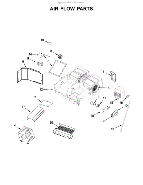 This air deflector redirects airflow inside the appliance to help maintain proper circulation and protect components from direct airflow. Replacing a damaged deflector restores intended air paths and can reduce uneven temperature or noise. What it does