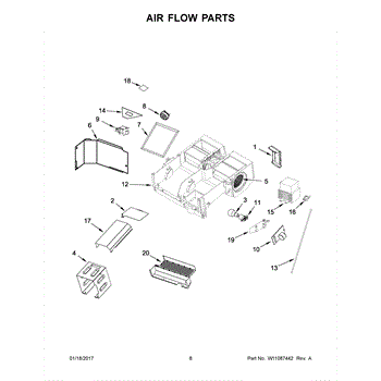 This air deflector redirects airflow inside the appliance to help maintain proper circulation and protect components from direct airflow. Replacing a damaged deflector restores intended air paths and can reduce uneven temperature or noise. What it does