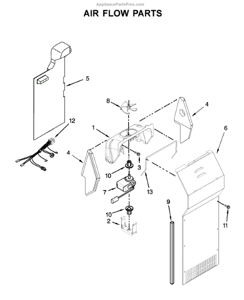This fan scroll is the molded airflow housing that channels cooling air through the appliance to help the cooling system run efficiently. Replace a damaged or cracked scroll to restore proper airflow and reduce excessive noise. What it does