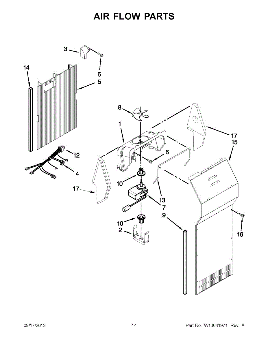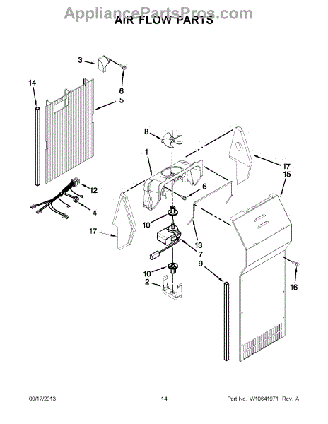 This fan scroll is the molded blower housing that directs airflow from the appliance fan for efficient cooling and ventilation. Replacing a damaged scroll restores proper air path and reduces airflow noise or performance issues. What it does