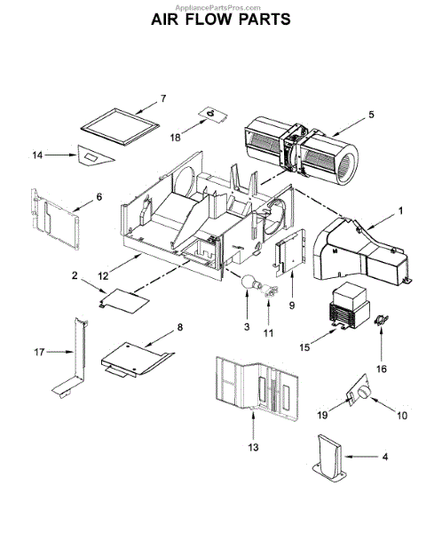 Replacement air duct for microwaves. This ventilation component directs airflow inside the unit. Order a new duct if yours is cracked or damaged.