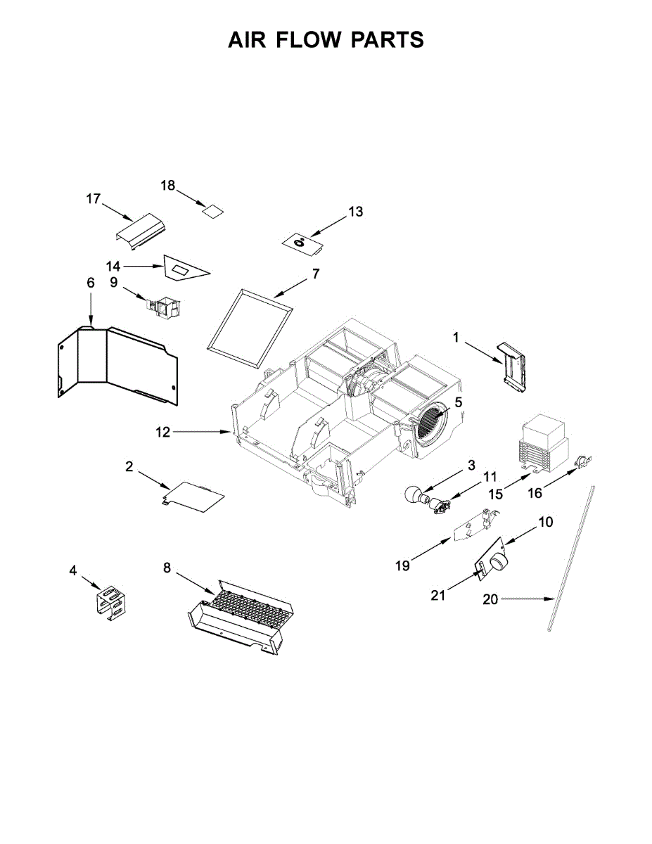 Air duct for microwaves and microwave/hood combos. Directs airflow from the ventilation system. Replace if cracked, broken, or missing for proper venting.