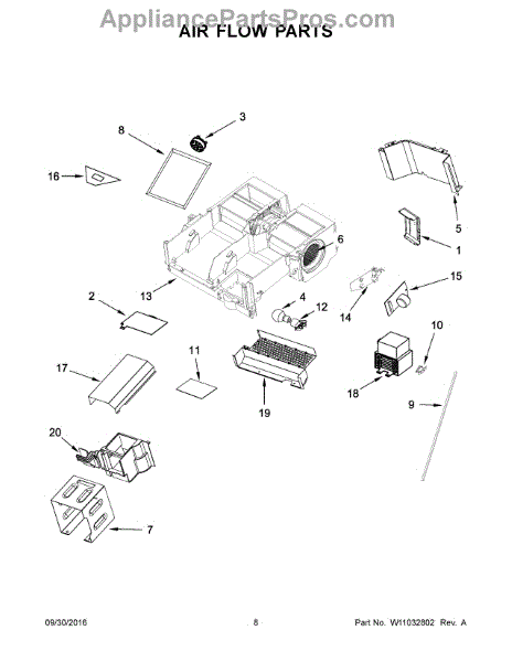 This air deflector redirects airflow inside the appliance to help maintain proper circulation and protect components from direct airflow. Replacing a damaged deflector restores intended air paths and can reduce uneven temperature or noise. What it does