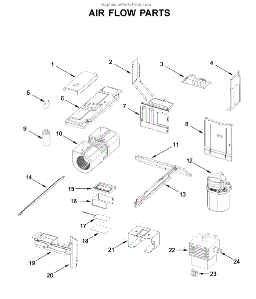 This deflector redirects airflow inside the appliance to protect internal components and help maintain even temperature and drying performance. It's a simple, durable replacement that restores proper air routing in the affected chamber. What it does: