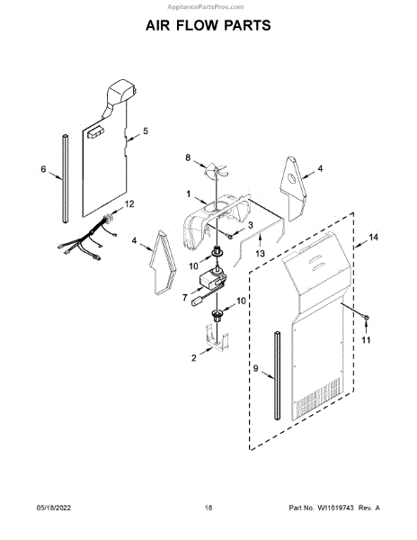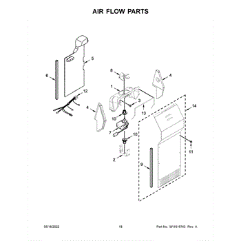 This fan scroll is the molded blower housing that directs airflow from the appliance fan for efficient cooling and ventilation. Replacing a damaged scroll restores proper air path and reduces airflow noise or performance issues. What it does