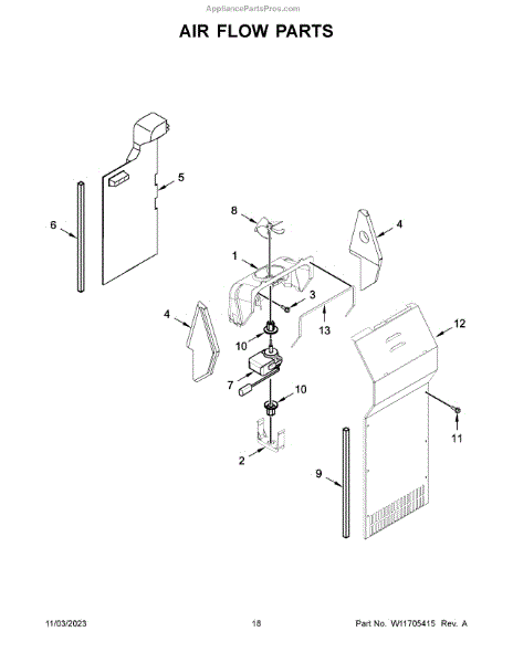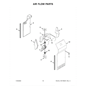 This fan scroll is the molded blower housing that directs airflow from the appliance fan for efficient cooling and ventilation. Replacing a damaged scroll restores proper air path and reduces airflow noise or performance issues. What it does