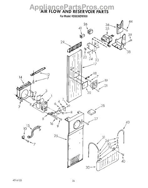 Parts for Kitchenaid KSSS36DWX00: 15 - Air Flow And Reservoir Parts