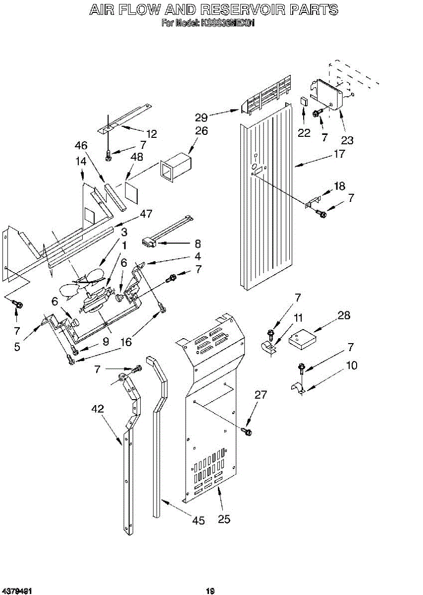This screw is used to secure the handle end cap to the center of the door. The screw size measures 8-18 x 1/2 inches.