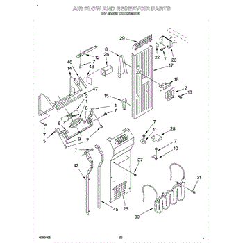 Molded plastic deflector that directs cold air around the icemaker assembly. Replace if cracked, broken, or missing to restore proper airflow routing.