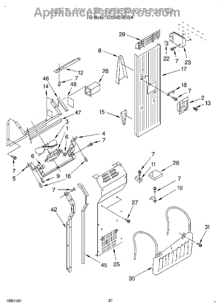 This screw is used to secure the handle end cap to the center of the door. The screw size measures 8-18 x 1/2 inches.