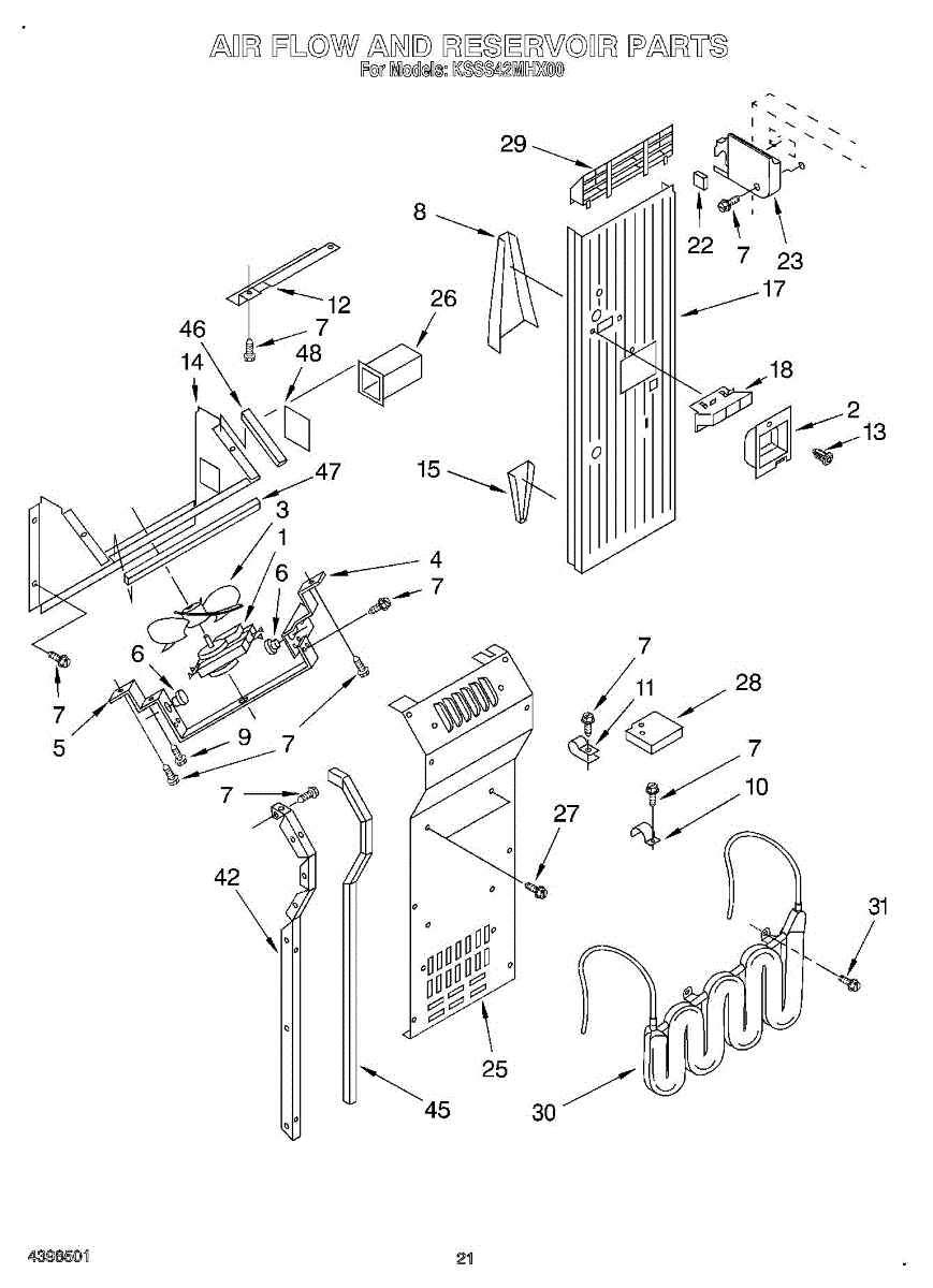 Stores and chills water before dispensing. Replace if cracked, leaking, or causing slime/film buildup in dispensed water. Installs inside refrigerator.