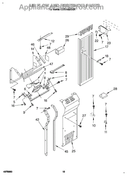 This screw is used to secure the handle end cap to the center of the door. The screw size measures 8-18 x 1/2 inches.