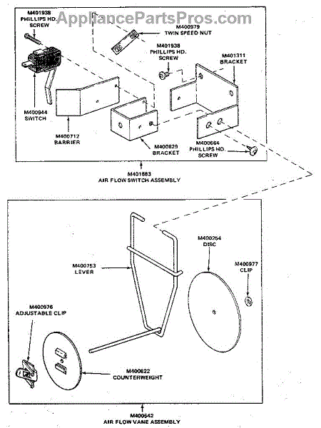 Parts for Huebsch 65CG: Air Flow Switch Assembly Parts