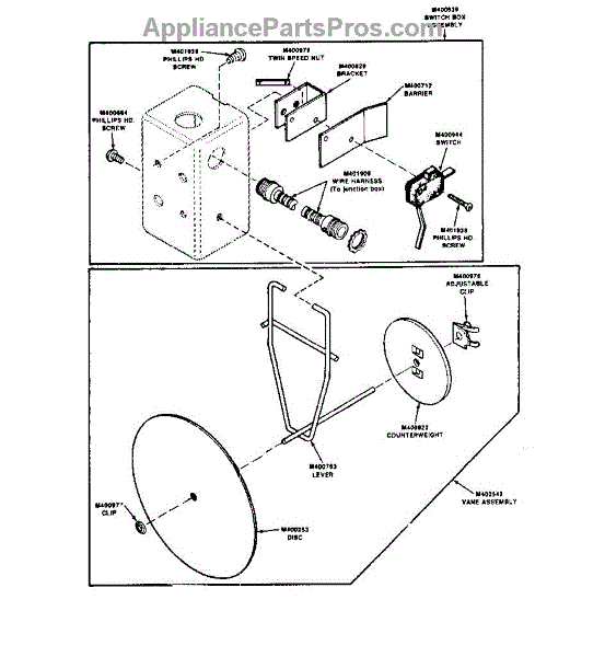Parts for Huebsch 30WG: Air Flow Switch & Harn Assy (Mounted On Rr Of Stove Assy) Parts