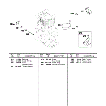Parts for Briggs & Stratton 243431-0531-99: Air Guide, Stopswitch, Cylinder Shield Parts