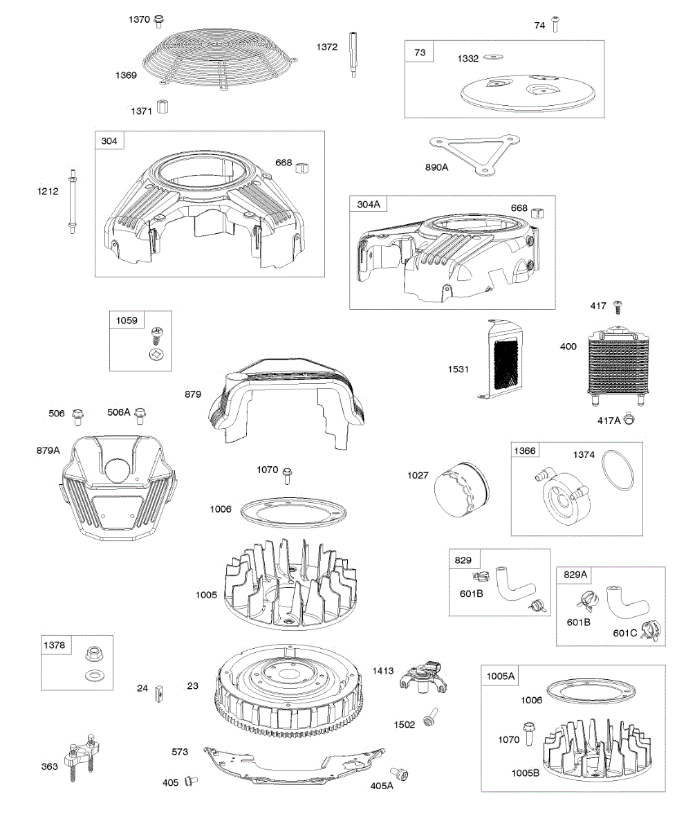 Parts for Briggs & Stratton 61E877-0002-J1: Air Guides, Control Bracket Parts