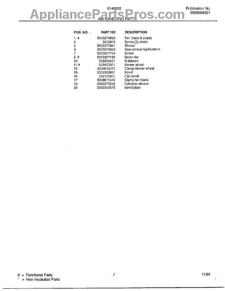 Parts for Frigidaire 5146002: Air Handling Parts
