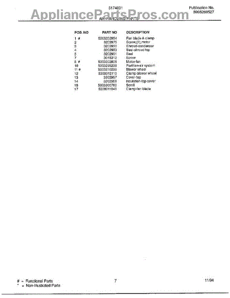 Parts for Frigidaire 5174001B: Air Handling Parts