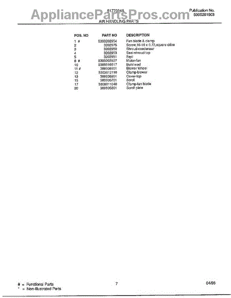Parts for Frigidaire 5177004A: Air Handling Parts