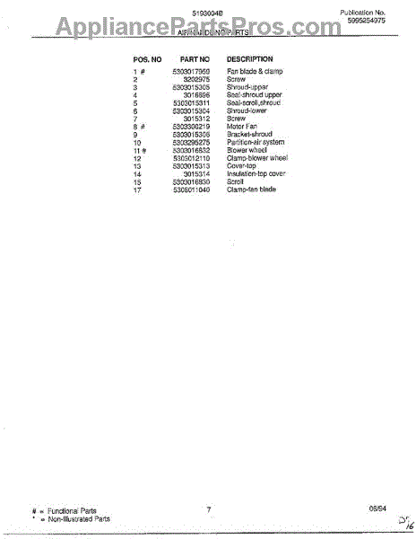 Parts for Frigidaire 5193004B: Air Handling Parts