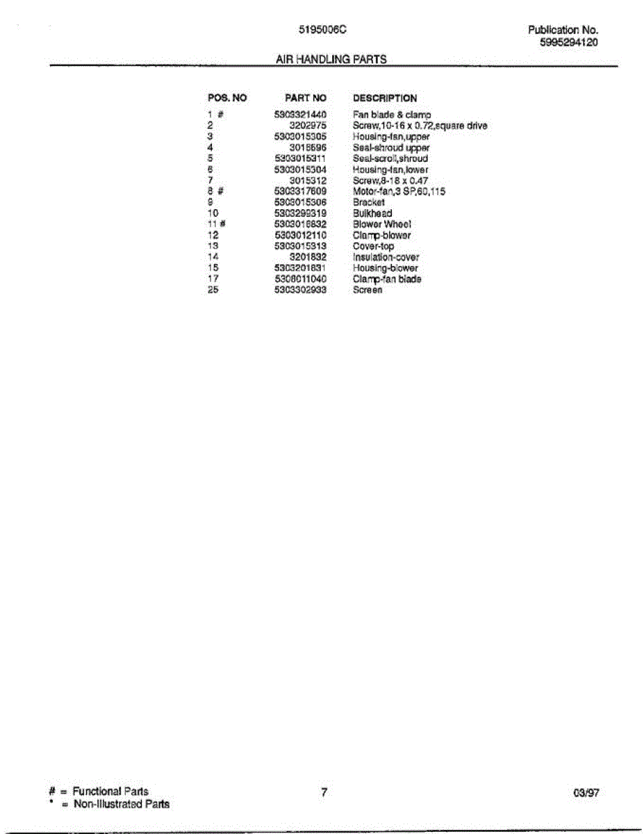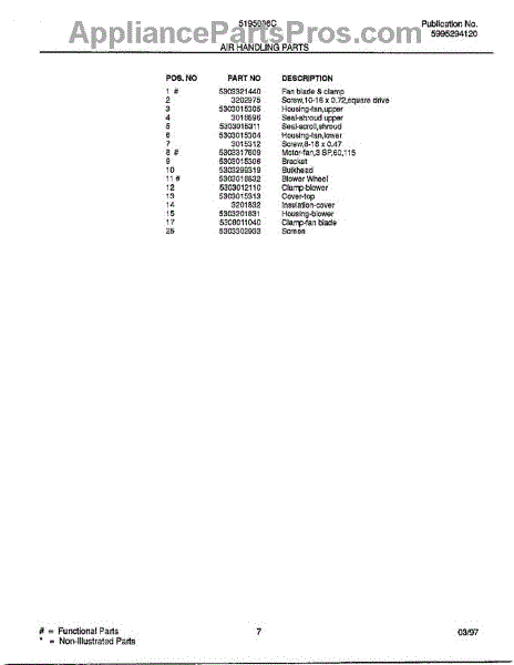 Parts for Frigidaire 5195006: Air Handling Parts
