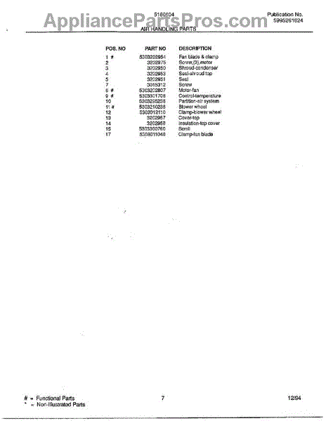 Parts for Frigidaire VWE5180A: Air Handling Parts