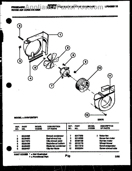 Parts for Frigidaire AHW12NT5F1: 05 - Air Handling Parts