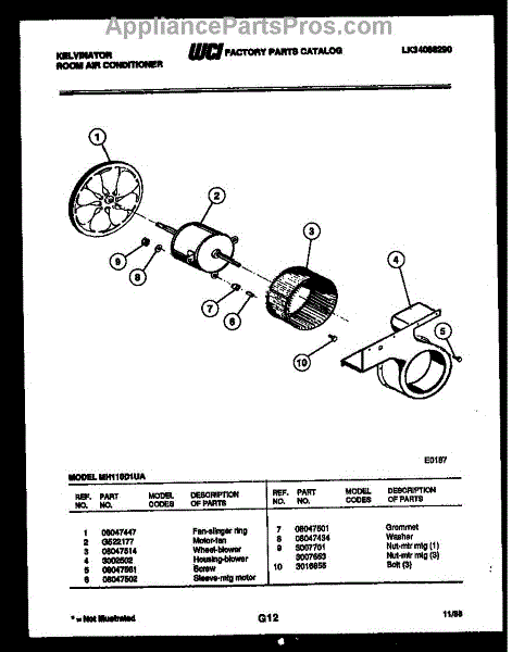 Parts for Frigidaire MH110D1UA: 04 - Air Handling Parts