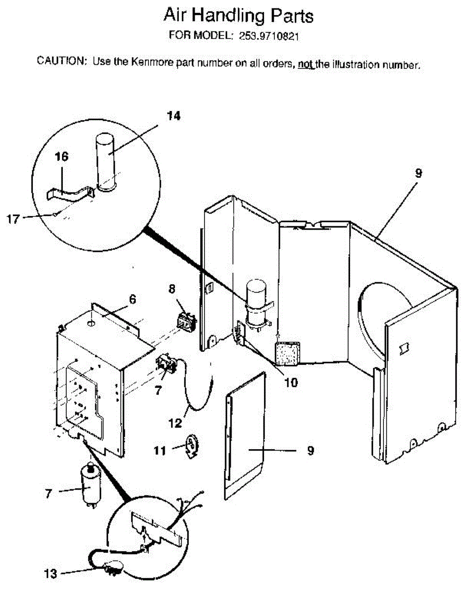 Parts for Kenmore 253.9710821 (2539710821, 253 9710821): Air Handling Parts